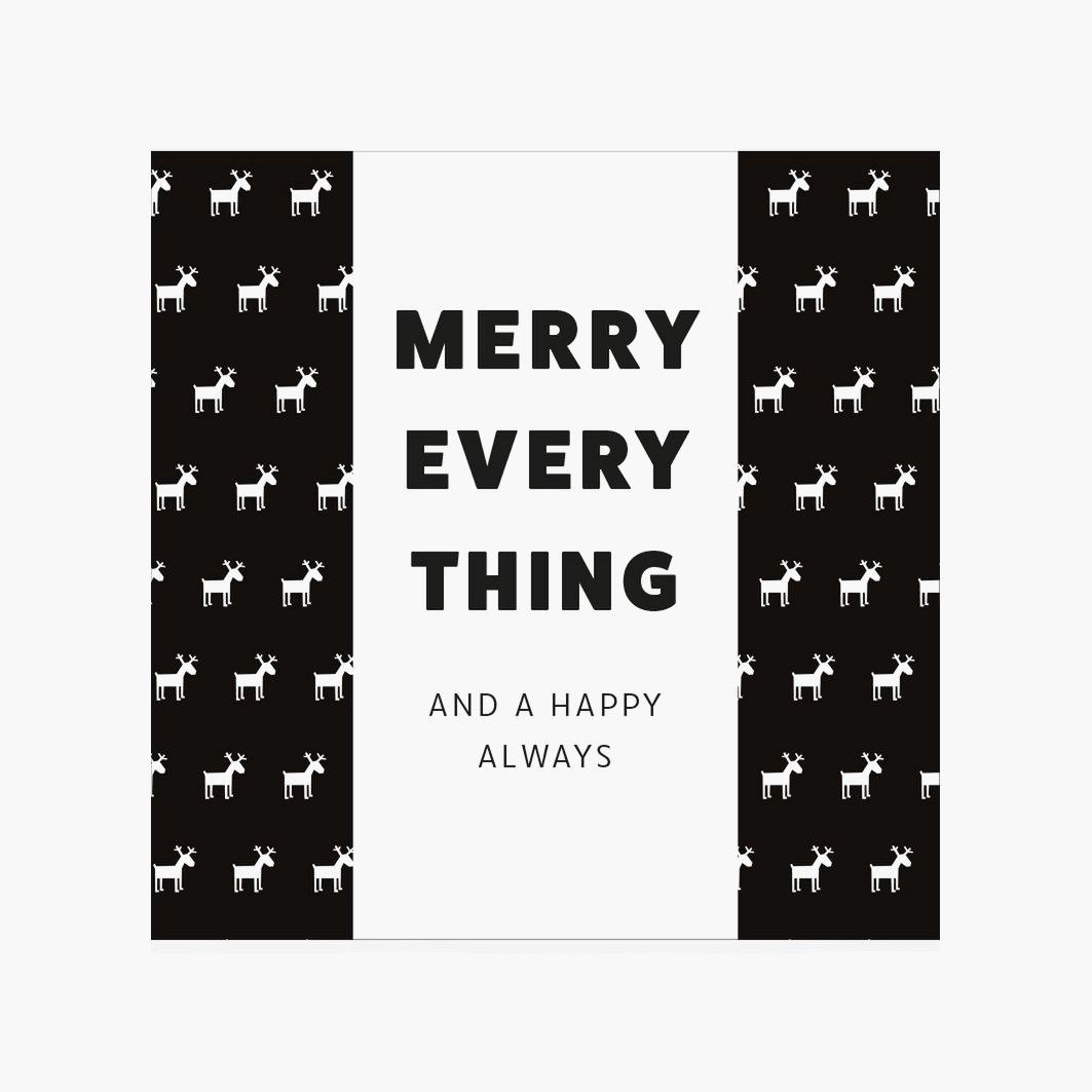 Tablica temne in bele čokolade v unikatni darilni embalaži s prazničnim zapisom "Merry Everything and a Happy Always". Popolno za sladkanje ob prazničnih trenutkih, kot majhno darilce ali kot sladek dodatek k darilnemu paketu.
