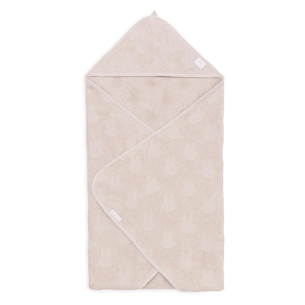 Mehka kopalna brisača s kapuco v barvi Nougat in nežnim Miffy potiskom je popolna po kopanju ali plavanju. Nežen frotir hitro vpija vlago, kapuca pa poskrbi, da dojenčku ostane toplo. Velikost: 75 × 75 cm.