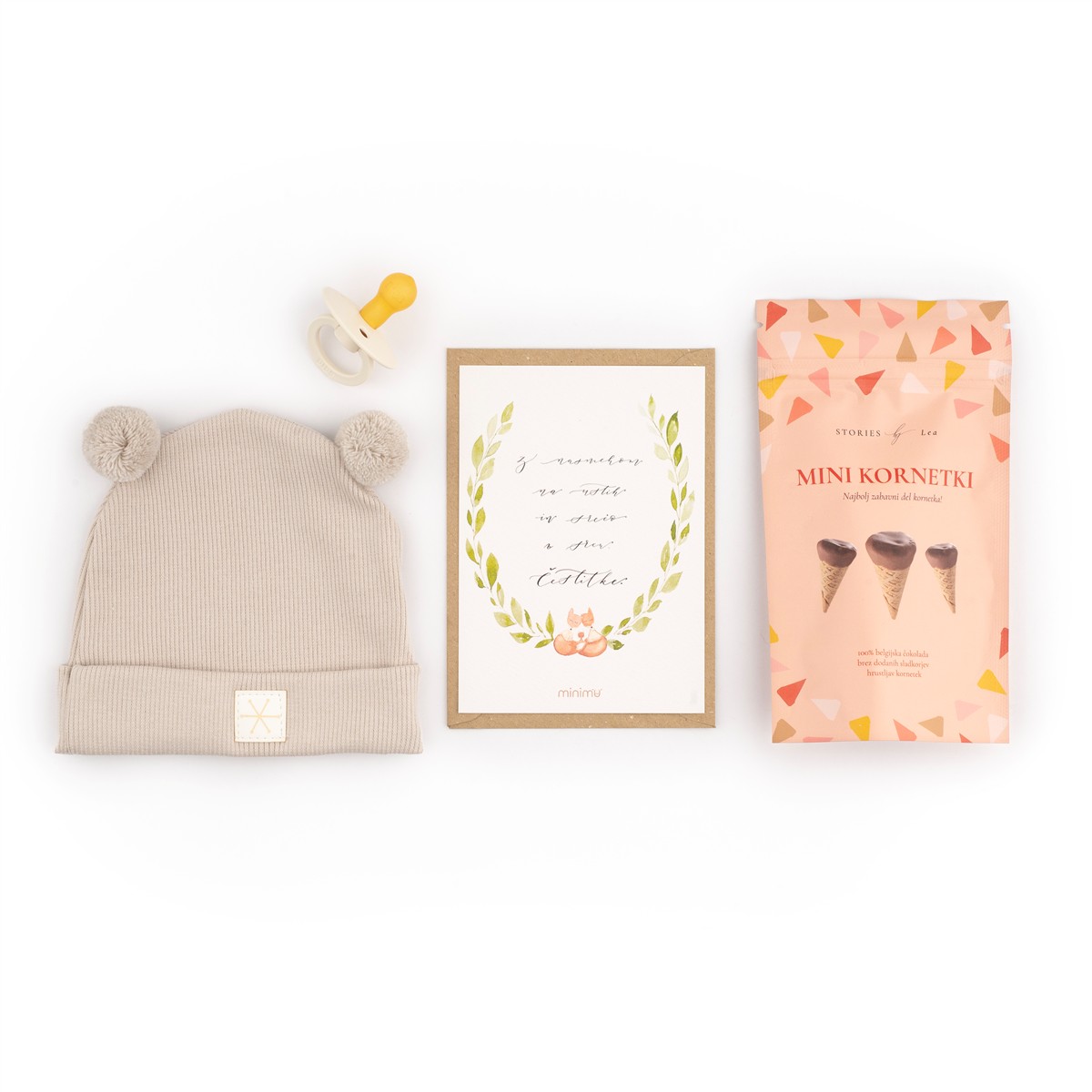 - otroško kapico s cofki v bež barvi, za starost 0-3 mesece, Pinokio, Poljska,