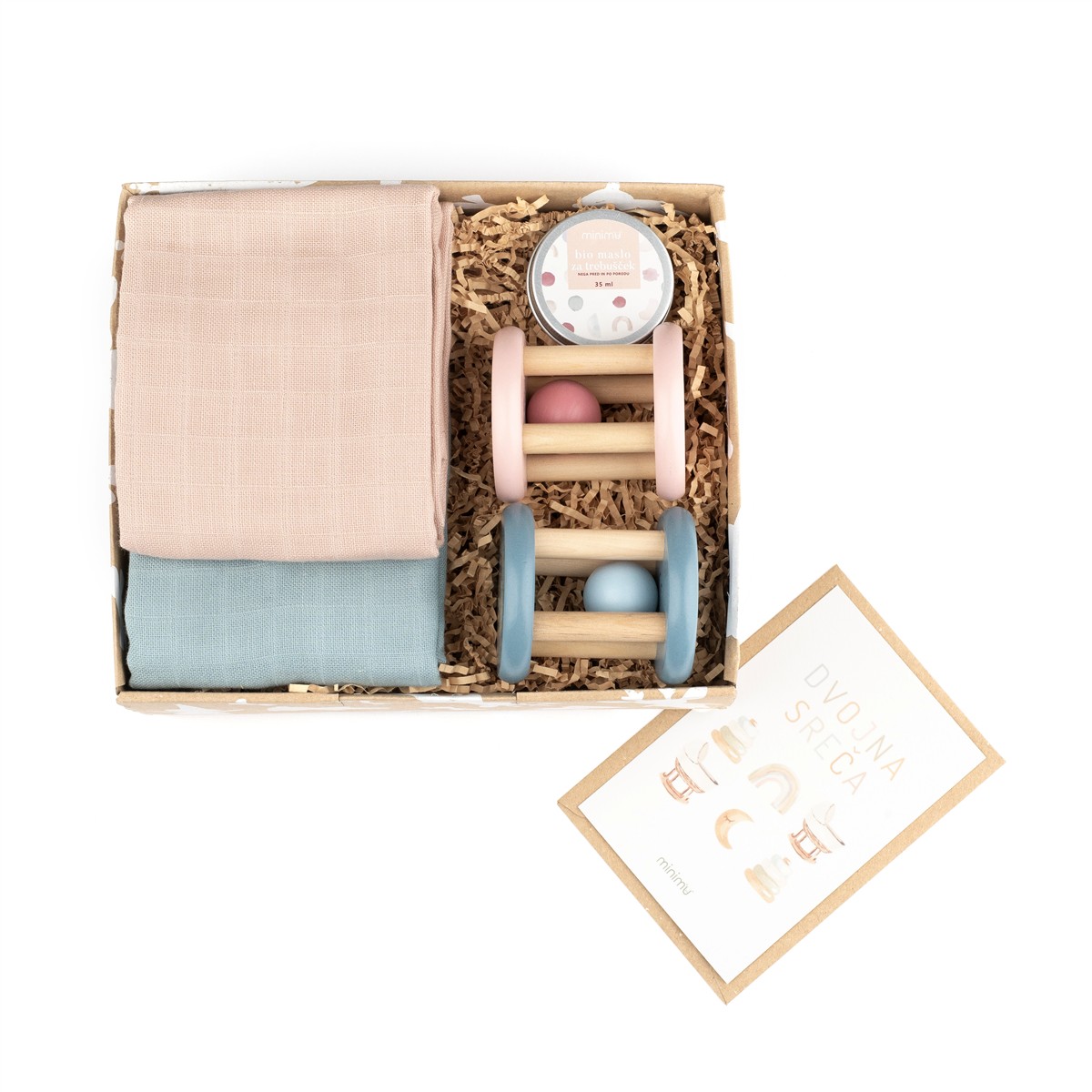 Presenetite mamico in novorojenčka s preprostim, a prečudovitim darilom. Vsi paketi so v nežnih barvah, primerni kot darilo ob rojstvu. Pri vseh paketkih smo poskrbeli, da se vedno najde tudi nekaj za mamico, ki si po porodu nedvomno zasluži pozornost, s katero se bo lahko pocrkljala. Naši paketki so skupek različnih, skrbno izbranih manjših darilc, ki tvorijo čudovito celoto. Vsak paket je zapakiran v lično embalažo, ki prikliče toplino v srce že ob samem odpiranju darila. Naše pakete lahko naročite kot telegram v porodnišnico (dostavljamo v porodnišnico Ljubljana, Kranj, Jesenice, Postojna, Brežice, Celje, Maribor, Izola, Slovenj Gradec, Murska Sobota, Novo mesto, Šempeter pri Novi Gorici, Trbovlje in Ptuj), kot darilo na prejemnikov naslov ali k sebi domov in ga ob prvem obisku novorojenčka prinesete s seboj kot darilo. Pri dostavi lahko izberete hitro pošto, ki paket dostavi v nekaj urah po celi Sloveniji (priporočamo za naročilo telegramov v porodnišnico) ali 24 urno dostavo, ki je primerna predvsem pri naročanju na dom. Telegram porodnišnica.