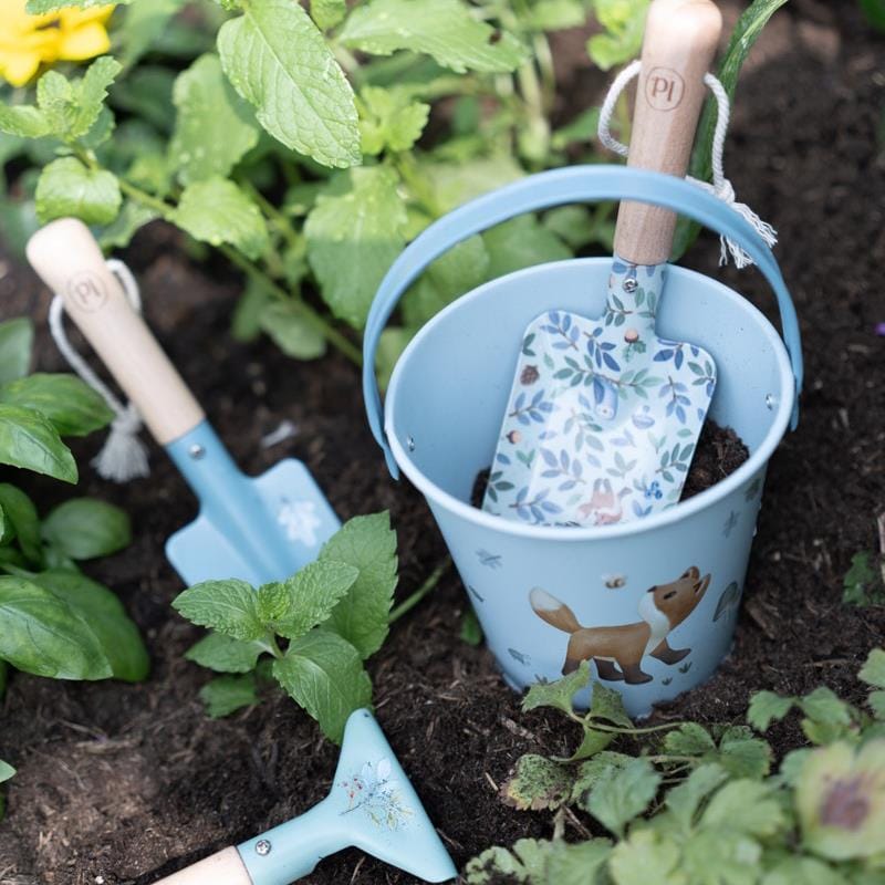 Popoln komplet za male vrtnarje! Vrtni set Forest Friends vsebuje dve lopatki in grabljice iz trpežne kovine in z lesenimi ročaji. Okrašen je z očarljivimi ilustracijami gozdnih prijateljev v nežnih modrih tonih – popoln za male raziskovalce narave.