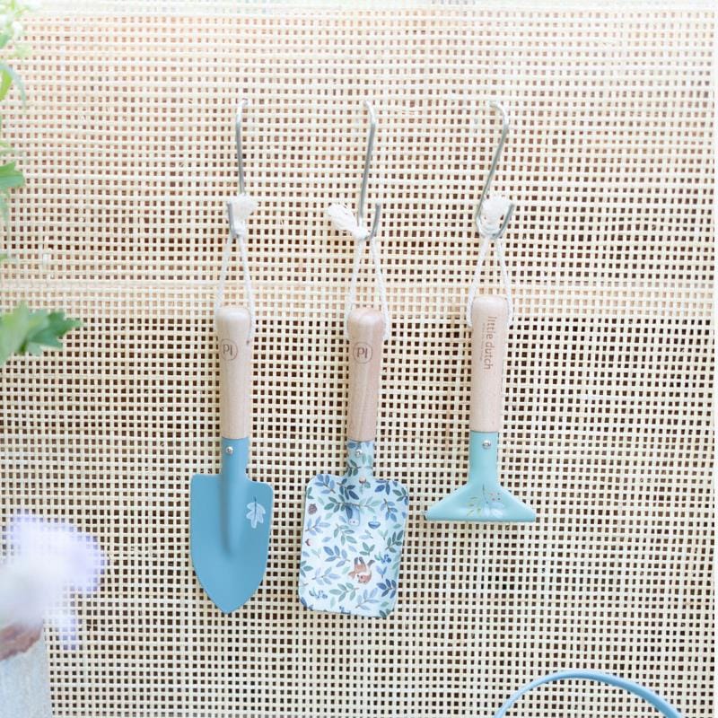 Naj vrtnarjenje postane prava pustolovščina z vrtnim setom Forest Friends! Set vključuje dve lopatki in grabljice, izdelane iz trpežne kovine z lesenimi ročaji, ki lepo sedejo v male ročice. Vsak kos v neženo modrem odtenku krasijo prikupne ilustracije gozdnih živali, značilne za kolekcijo Forest Friends. Po končanem delu na vrtu lahko otrok orodje preprosto obesi s pomočjo priročnih vrvic, zato je vedno lepo pospravljeno in pripravljeno za naslednjo raziskovalno dogodivščino. Popolna izbira za male vrtnarje, ki radi kopljejo, grabijo in odkrivajo čarobni svet narave!