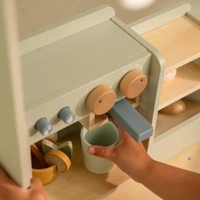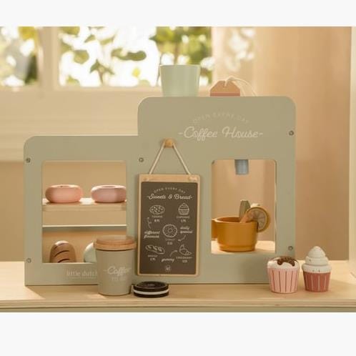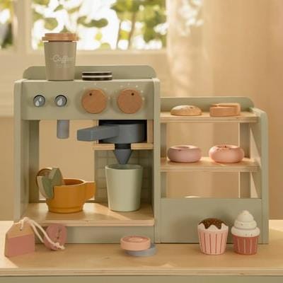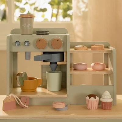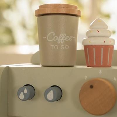 Dobrodošli v čarobnem kavnem kotičku Little Dutch, kjer se vsak dan začne z nasmehom in sveže pripravljeno “kavo”! Ta čudovit lesen komplet omogoča otrokom, da se vživijo v vlogo pravega barista – pritisnejo gumbe, izberejo nastavitev in vstavijo kapsulo, nato pa postrežejo mamljivo pijačo prijateljem ali plišastim gostom.