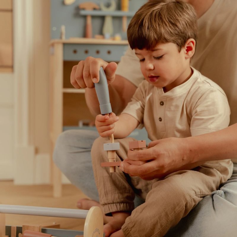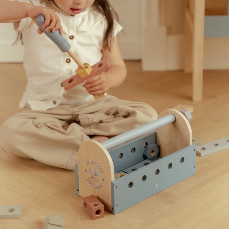 Lesena škatla z orodjem Blue priznane nizozemske blagovne znamke Little Dutch za otroke, ki radi pomagajo pri hišnih opravilih. Škatla je sestavljena iz 22 delov v modnih odtenkih. Škatla zagotavlja veliko zabave za vsakega malega mojstra v hiši.