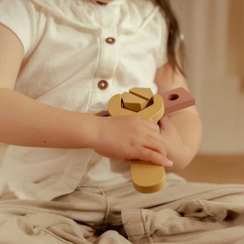 Vse, kar potrebuje majhen mizar! Lesena škatla za orodje vsebuje kladivo, izvijač, ključ ... za popolno ustvarjanje najlepših stvaritev. A to še ni vse – stranice se lahko uporabijo tudi kot tolkalna miza! Na ta način lahko malčki ustvarjajo in vijačijo, medtem ko igrivo razvijajo svoje motorične sposobnosti in ustvarjalnost. Ste pripravljeni začeti? Krasno in uporabno darilo za otroka od 2 let dalje.
