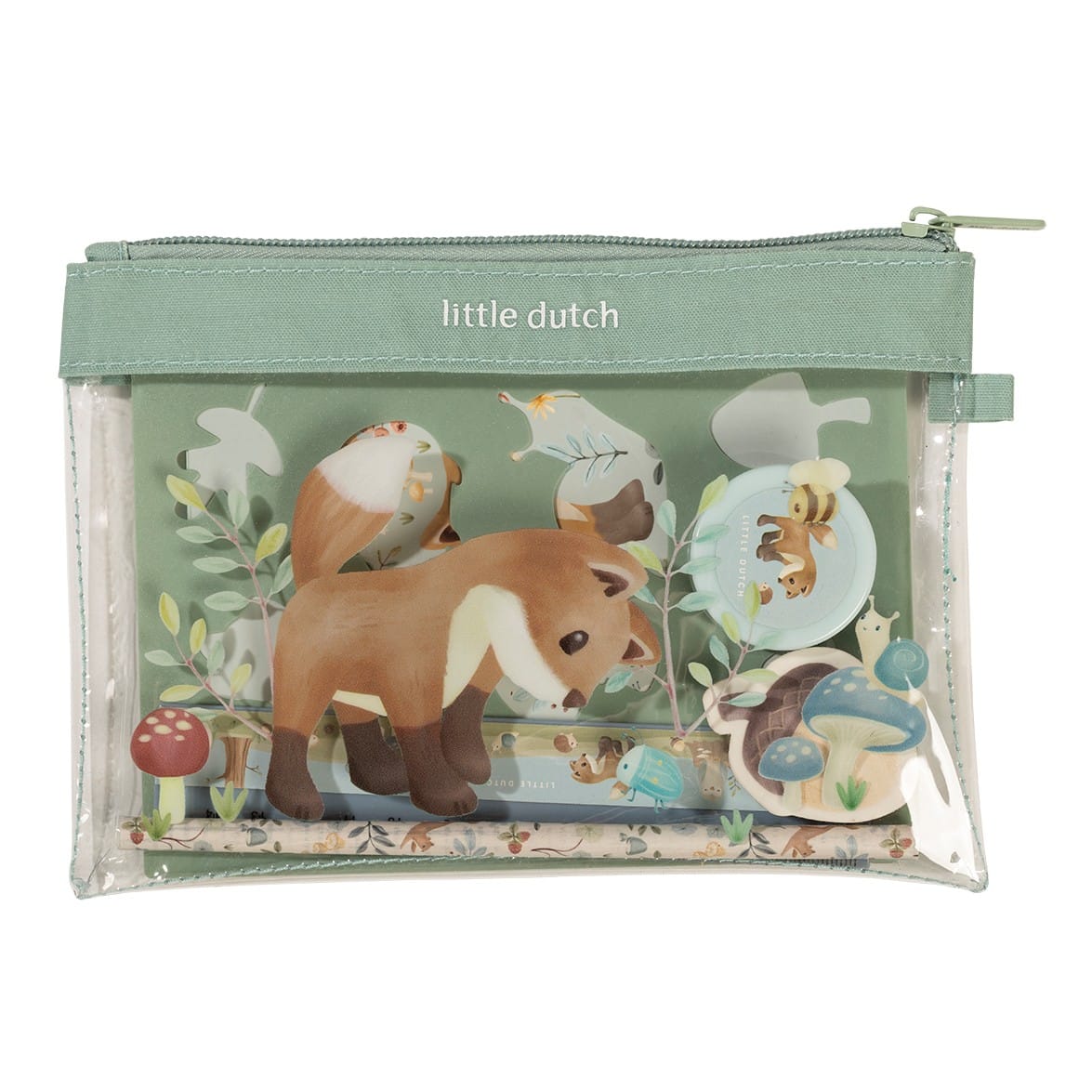 Komplet pisalnih potrebščin Forest Friends vsebuje vse, kar mali ustvarjalci potrebujejo: zvezek, nalepke, ravnilo, radirko, šilček in šablone. Vse je lično pospravljeno v priročni peresnici s čudovitimi motivi gozdnih prijateljev. Krasna ideja za darilo za vse male ustvarjalce!