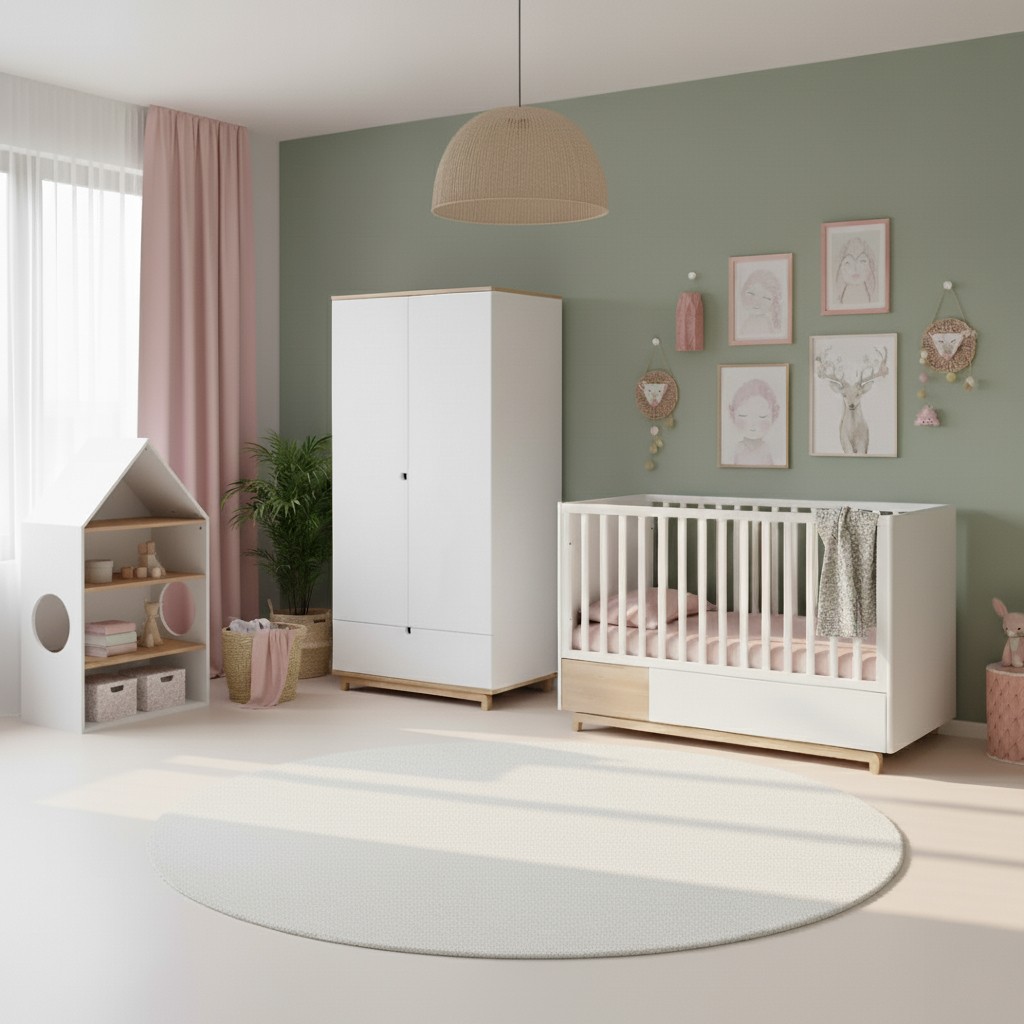 Uživajte v mehkobi in zračnosti te posteljnine iz bombažnega muslina, ki nežno ovije vašega otroka in zmanjša tveganje pregrevanja. Idealna izbira za udoben spanec vašega malčka. Komplet posteljnine za košaro vsebuje: obrobo za košaro, rjuho za vzmetnico, odejo in blazino z vdolbino za glavo.