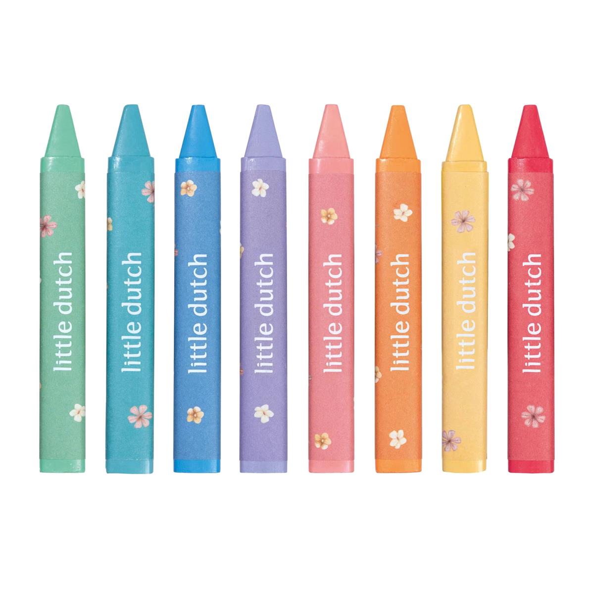 S temi prikupnimi voščenimi barvicami Little Dutch Rosa & Friends bo risanje postalo prava mala čarobnost. Komplet vsebuje 8 voščenih barvic v nežnih, pastelnih odtenkih, ki se popolno prilegajo majhnim otroškim rokam in gladko drsijo po papirju. Zaradi ergonomične oblike so idealne za malčke, ki šele raziskujejo prve ustvarjalne poteze, barvne packe in svoje domišljijske svetove.