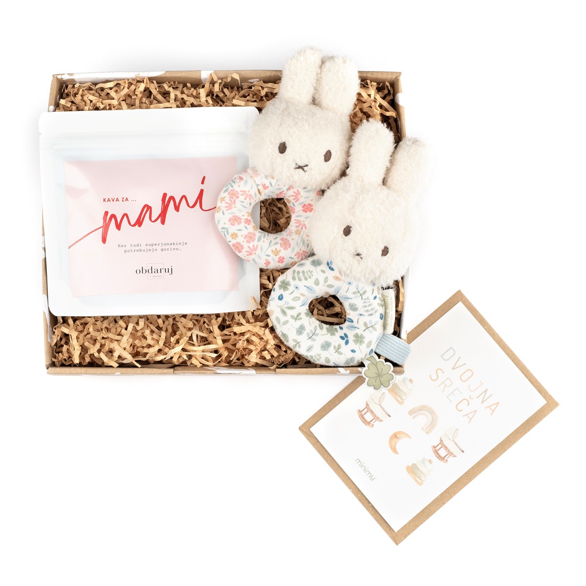Presenetite mamico in novorojenčka s preprostim, a prečudovitim darilom. Vsi paketi so v nežnih barvah, primerni kot darilo ob rojstvu. Pri vseh paketkih smo poskrbeli, da se vedno najde tudi nekaj za mamico, ki si po porodu nedvomno zasluži pozornost, s katero se bo lahko pocrkljala. Naši paketki so skupek različnih, skrbno izbranih manjših darilc, ki tvorijo čudovito celoto. Vsak paket je zapakiran v lično embalažo, ki prikliče toplino v srce že ob samem odpiranju darila. Naše pakete lahko naročite kot telegram v porodnišnico (dostavljamo v porodnišnico Ljubljana, Kranj, Jesenice, Postojna, Brežice, Celje, Maribor, Izola, Slovenj Gradec, Murska Sobota, Novo mesto, Šempeter pri Novi Gorici, Trbovlje in Ptuj), kot darilo na prejemnikov naslov ali k sebi domov in ga ob prvem obisku novorojenčka prinesete s seboj kot darilo. Pri dostavi lahko izberete hitro pošto, ki paket dostavi v nekaj urah po celi Sloveniji (priporočamo za naročilo telegramov v porodnišnico) ali 24 urno dostavo, ki je primerna predvsem pri naročanju na dom. Telegram porodnišnica.